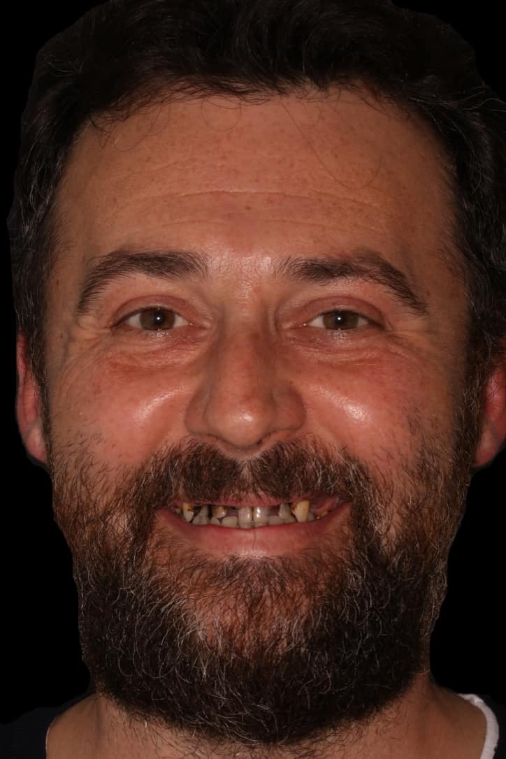 Grazie a nuovi impianti dentali, corone in zirconio e faccette in ceramica integrale, Andrea è tornato a sorridere
